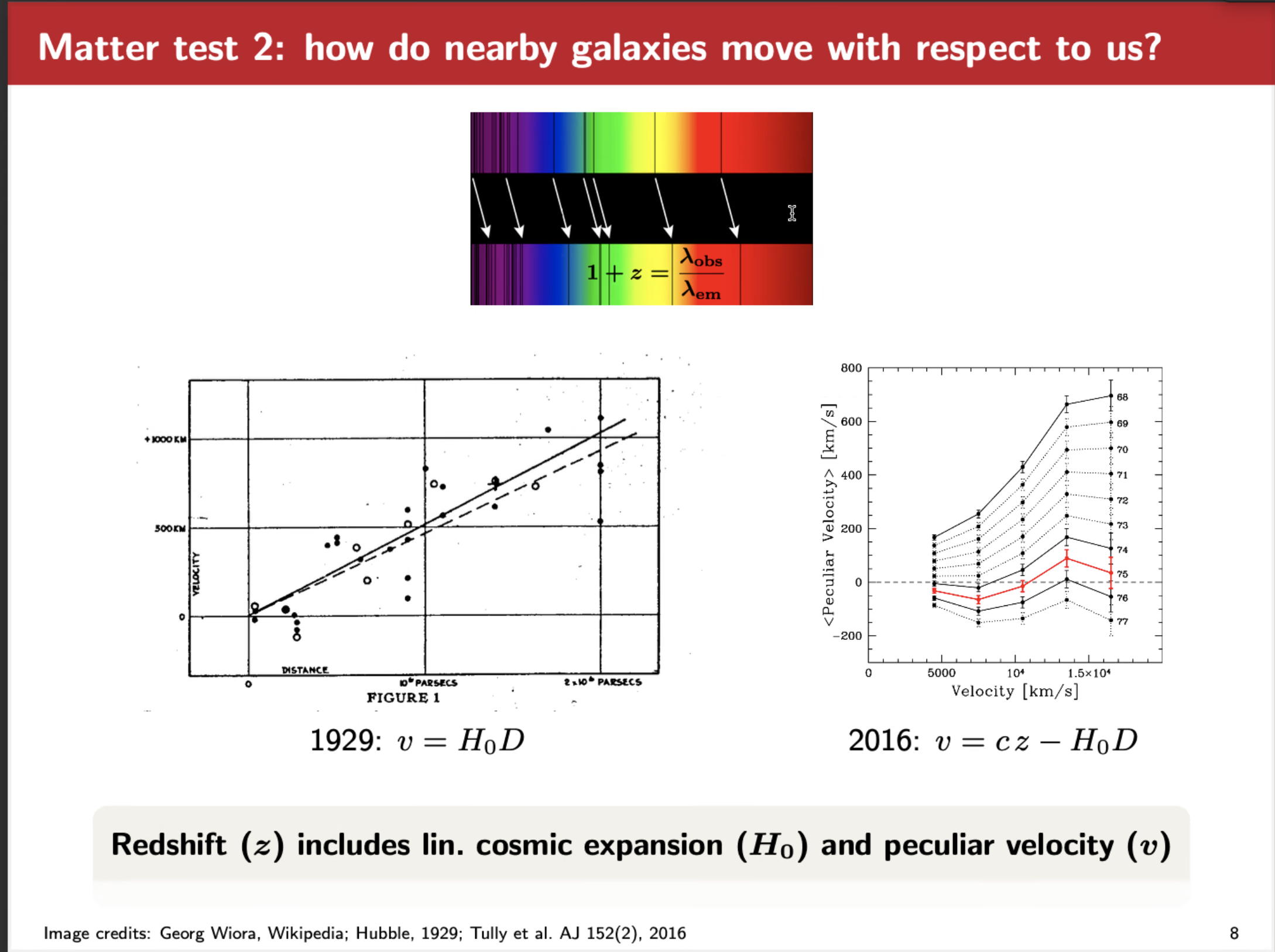 right fig: degenaracy between the peculiar velocity and hubble flow.
